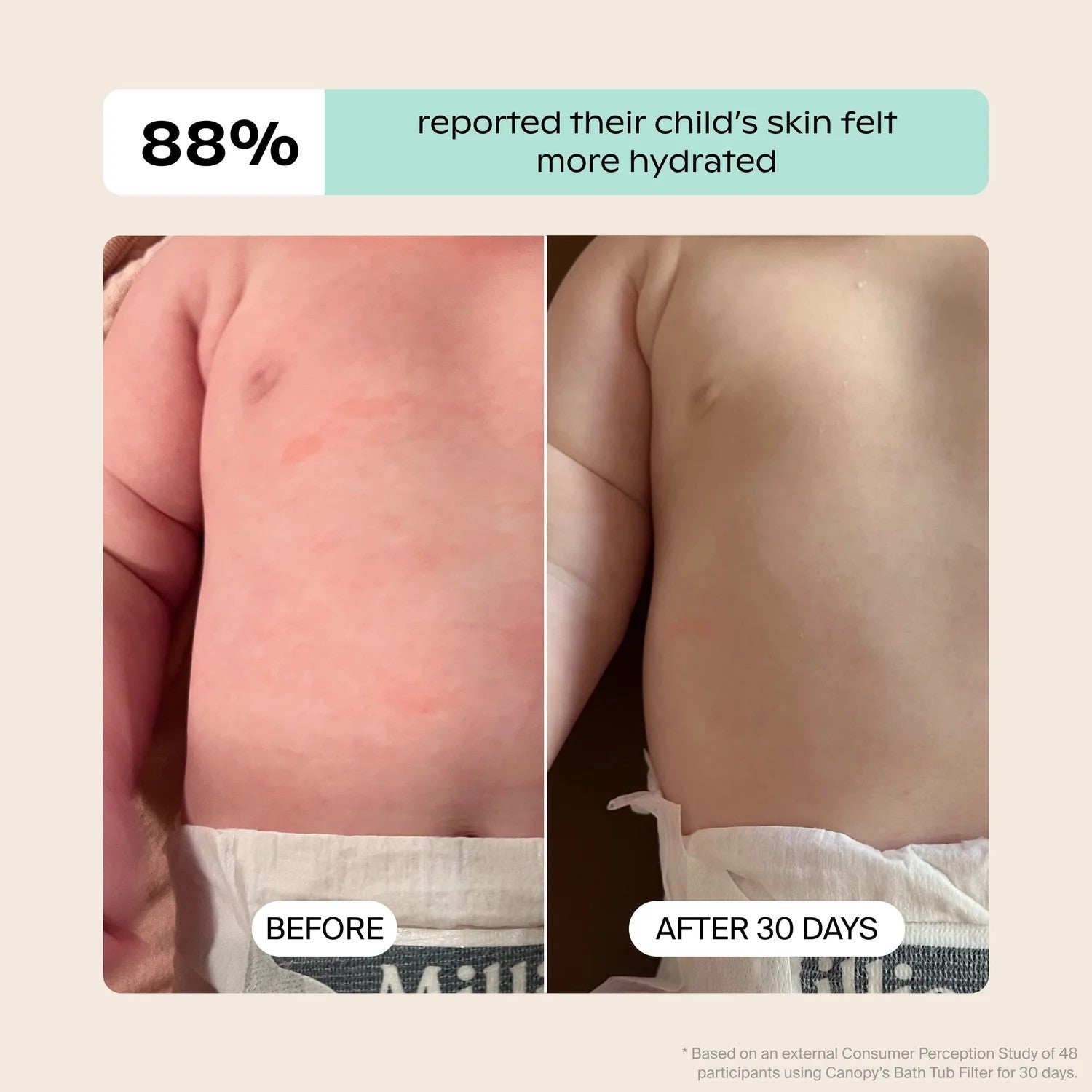 An easy-to-install bath tub filter that reduces chlorine and irritants, protecting delicate skin.