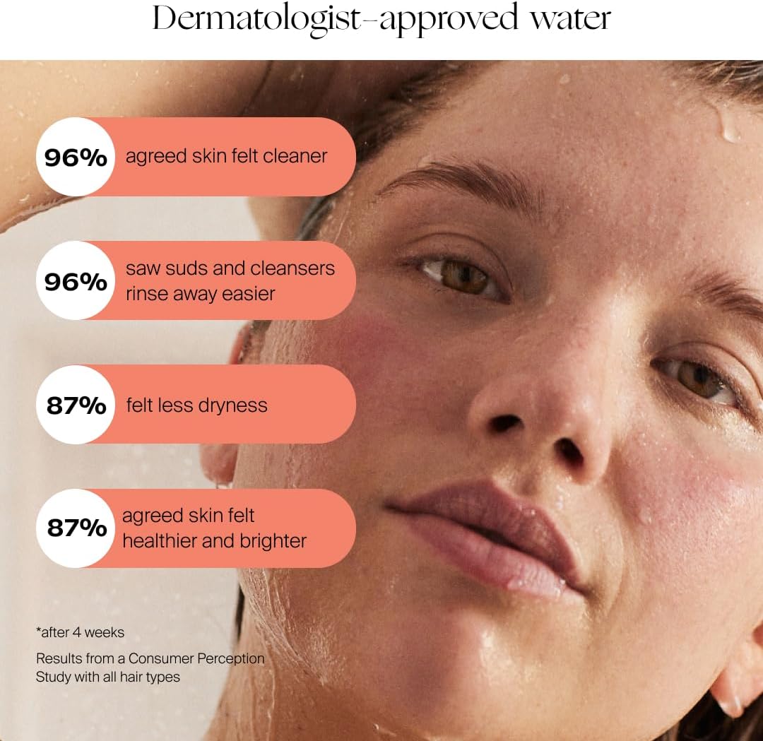 - Improve Hair and Skin Health: recommended by dermatologists, this showerhead helps to rejuvenate your hair and skin by filtering out harmful impurities from hard and chlorinated water. Gentle on sensitive skin, it's ideal for those dealing with eczema, psoriasis, or acne.