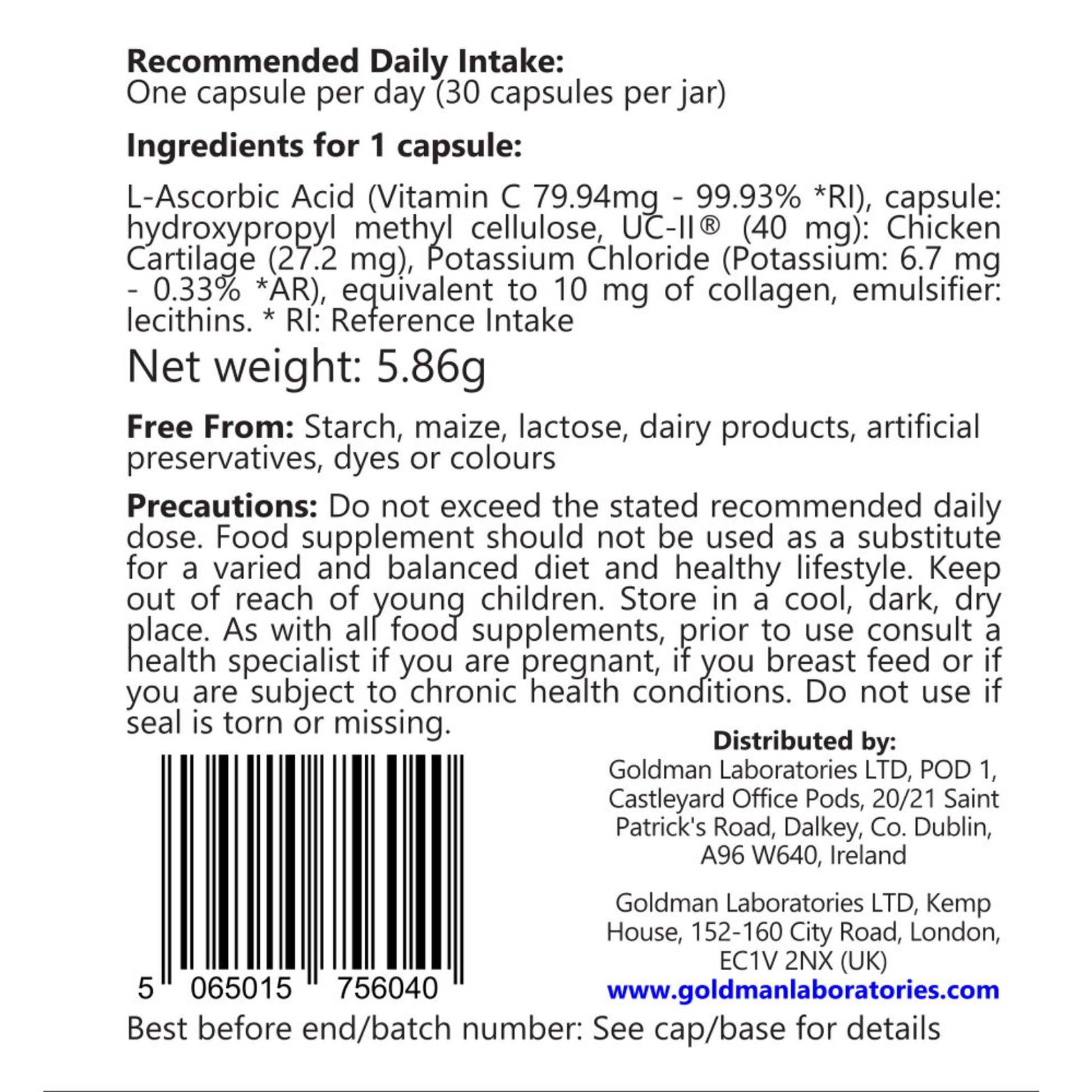 Advanced formula with UC-II collagen and vitamin C for joint and skin health.