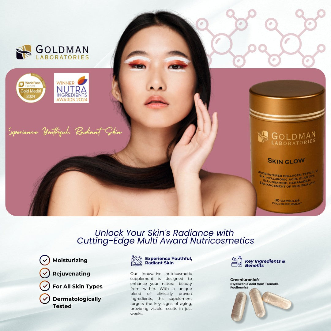 Enriched with essential vitamins and minerals, this supplement supports overall skin health, improving elasticity, reducing the appearance of fine lines, and promoting a glowing complexion. Backed by clinical studies and recognized with industry awards, Skin Glow is your go-to solution for comprehensive skin care and long-lasting hydration.
