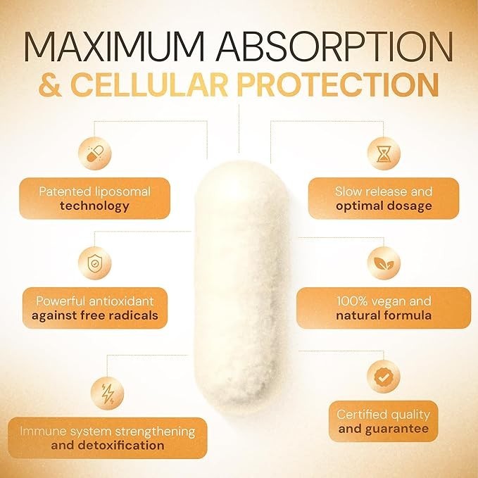 Advanced liposomal glutathione supplement supporting detoxification and immune health.