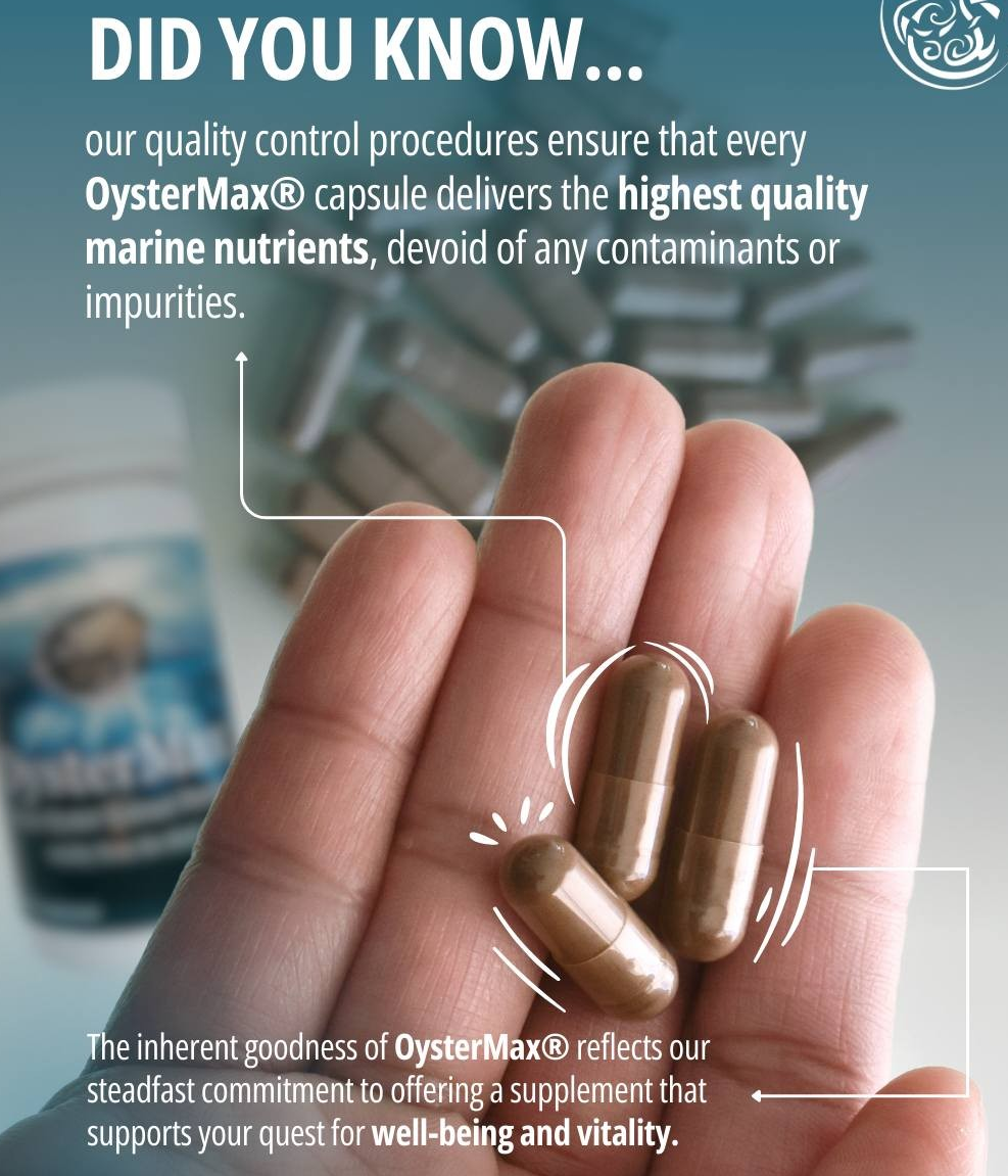 OysterMax is a premium oyster extract supplement encapsulated to provide significant amounts of naturally occurring nutrients essential for good health. Rich in zinc, copper, selenium, and iodine, all naturally occurring as nature intended.