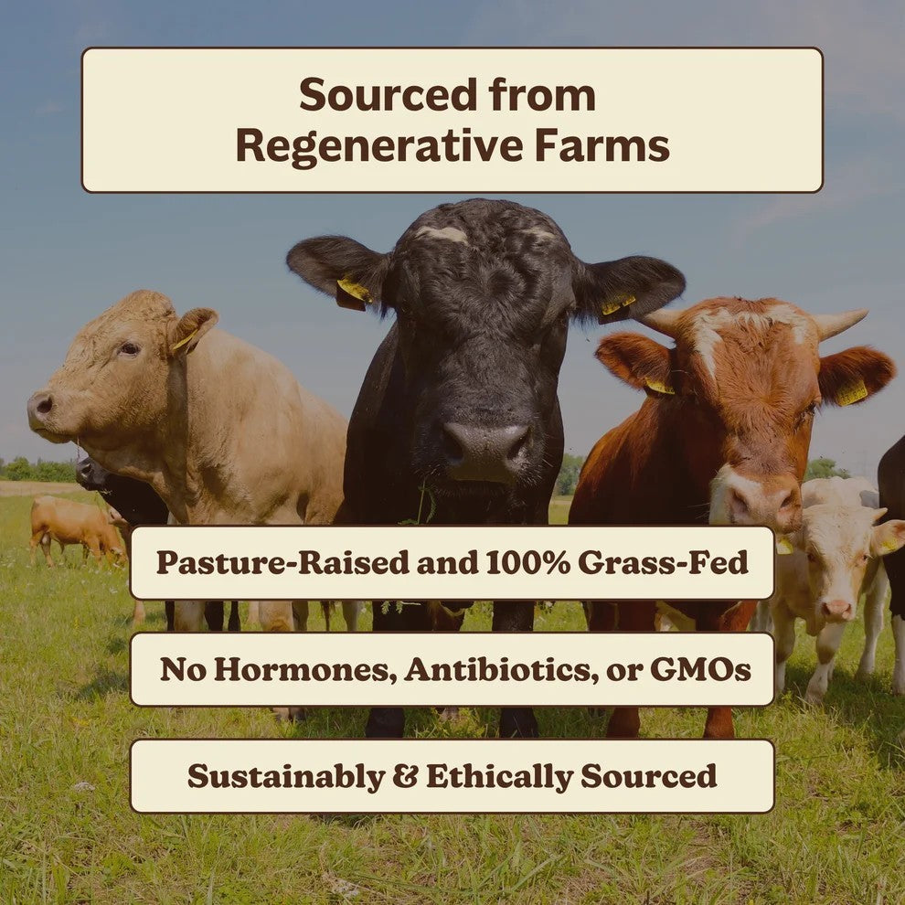 Grass-Fed Beef Bone & Marrow, crafted from 100% grass-fed and grass-finished cattle. This supplement harnesses the power of nature, offering a rich source of micronutrients vital for maintaining healthy bones, teeth, and immune system functions. Each serving provides 3,000 mg of non-defatted, freeze-dried long bones, free from allergens, antibiotics, GMOs, and artificial hormones.