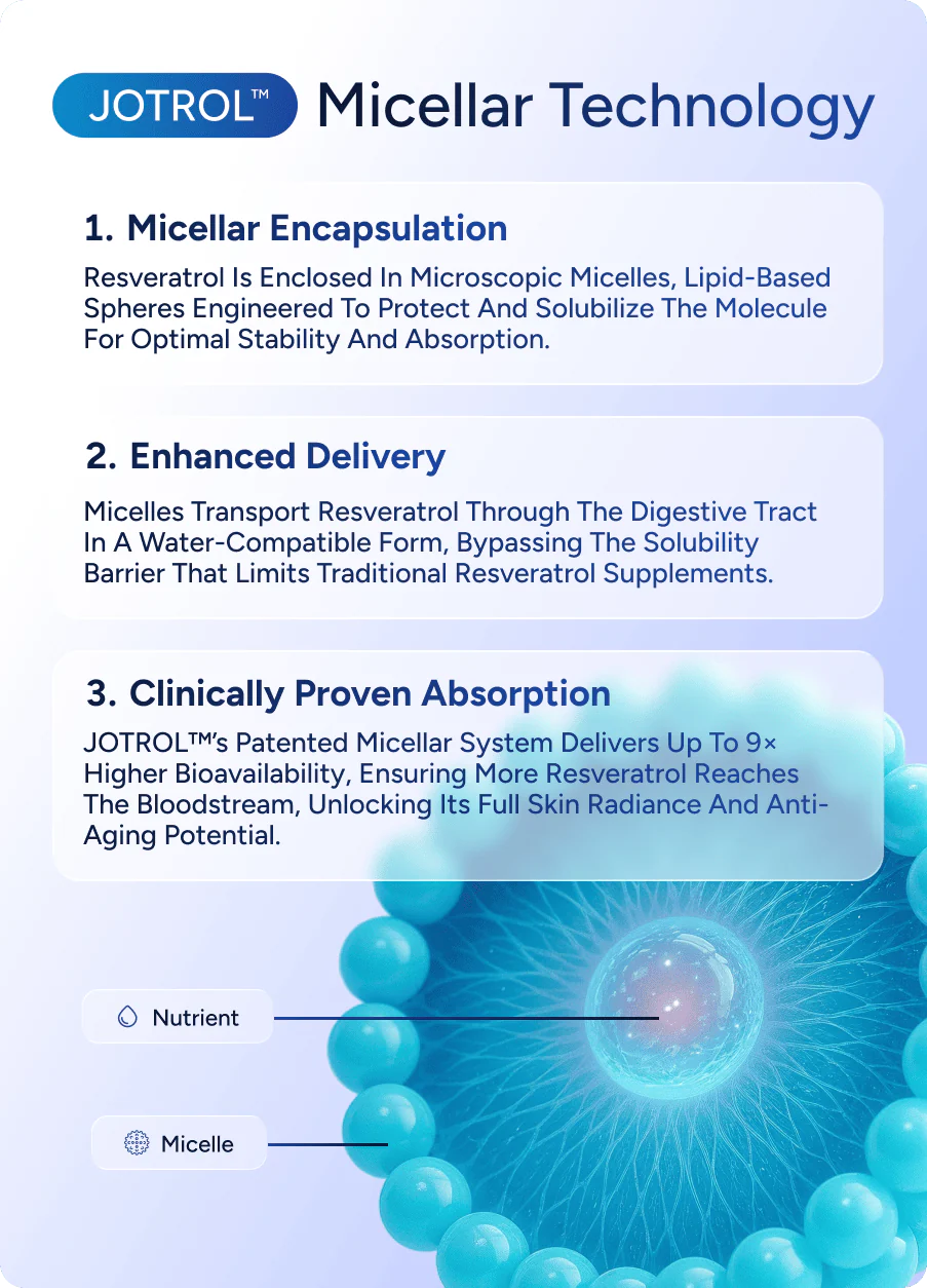 JOTROL™ has demonstrated a nine-fold increase in resveratrol bioavailability: optimal absorption and efficacy.