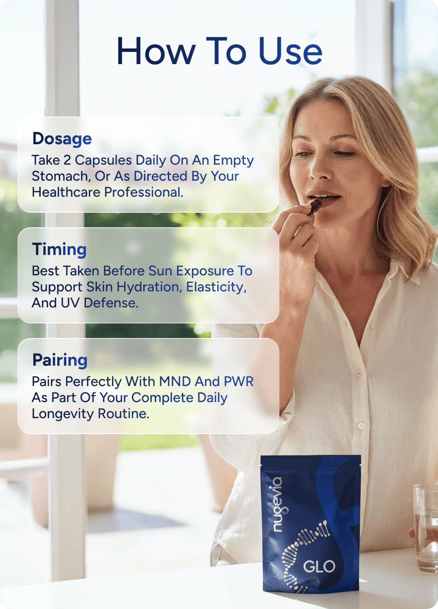 GLO is a pioneering 'beauty-from-within' supplement designed to elevate skin health through clinically validated cellular science.