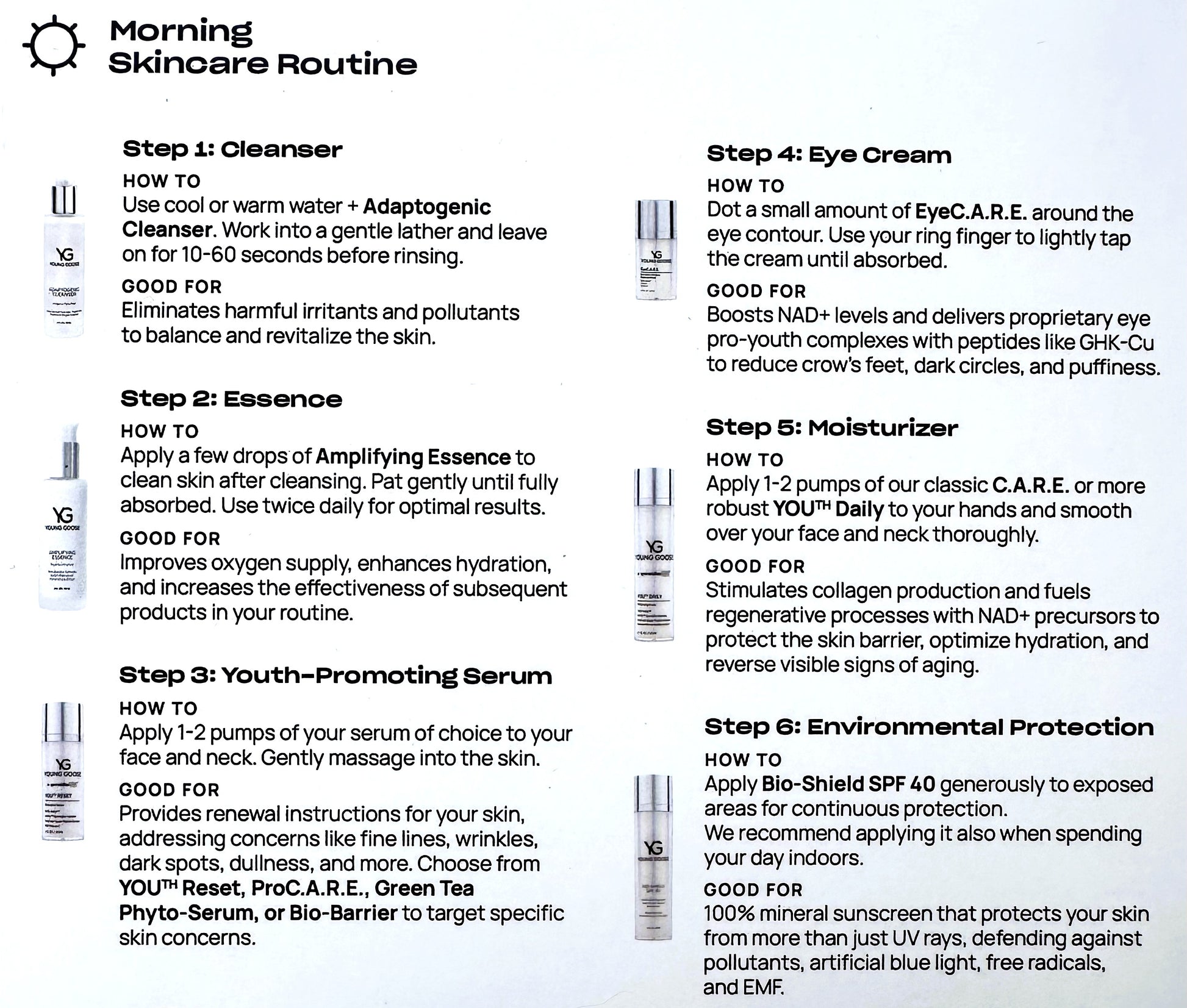 Morning & Evening, after cleansing, spritz onto the face and neck to prep and hydrate before applying serums or creams.